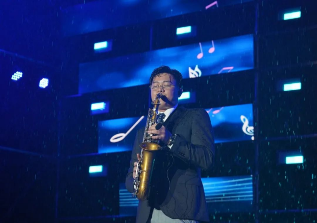 經(jīng)過第一輪的競唱后,剛停歇的大雨仿佛也被歌聲感染,開始如注而下,但絲毫沒有阻擋歌手、觀眾的熱情,現(xiàn)場卻沒有一個(gè)人離去。隨著一段悠揚(yáng)、極具電影感的“雨中薩克斯”表演,將音樂節(jié)推向一個(gè)新的階段,主持人在雨中主持,選手在雨中激情歌唱,觀眾們打起傘、披上雨衣冒雨觀看,歌聲、雨聲、伴奏交相輝映,演繹了一場經(jīng)典而深刻的“雨中音樂節(jié)”。
