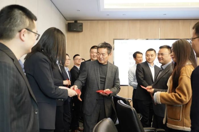 開工第一天,中偉人或在工位上忙碌,或已經(jīng)投身到開年沖刺的籌備會議中。鄧光明親切地來到一間間辦公室、會議室,將開工紅包與新年祝福帶給每一位中偉人,勉勵大家新的一年奮勇爭先、創(chuàng)造佳績。開門紅包給新年的工作增添了好彩頭,大家喜笑顏開、“龍”光煥發(fā),辦公室里洋溢著喜慶的氛圍。