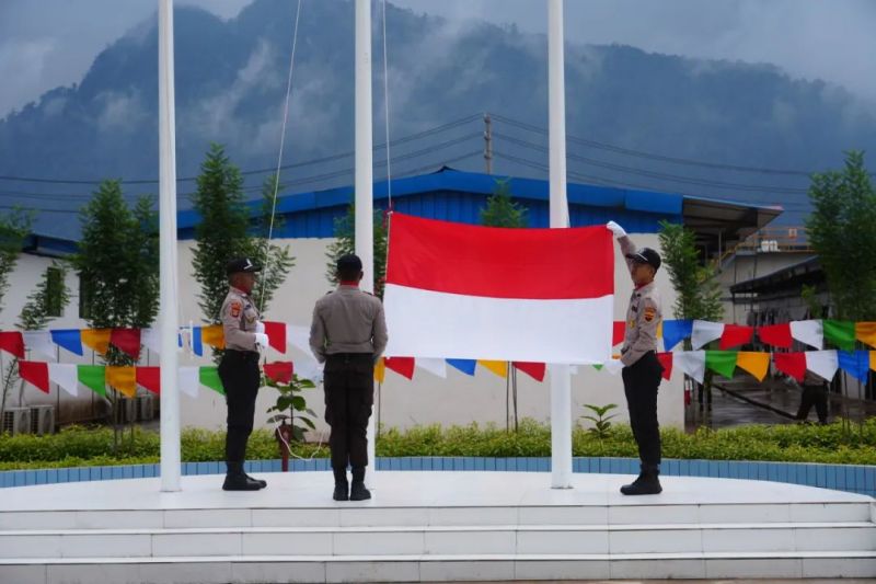 8月17日上午,中偉印尼北莫羅瓦利產(chǎn)業(yè)基地在生活區(qū)廣場舉辦了慶祝印尼獨立日升旗儀式及慶祝活動。基地應(yīng)急管理部印尼籍員工組成的印尼國旗護衛(wèi)隊邁著堅定整齊的步伐,護送印尼國旗入場。伴隨著激昂的印尼國歌,印尼國旗冉冉升起、迎風飄揚。儀式代表分別宣讀印度尼西亞獨立宣言、1945年《憲法》開篇文本,頌?zāi)疃\文,儀式長帶領(lǐng)全體人員頌讀建國原則。