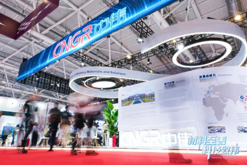 位于深圳國際會展中心6T088展位的中偉股份展臺人才攢動,前來參觀交流的嘉賓絡繹不絕,帶有“CNGR中偉”LOGO的動態冰屏門頭點亮全場,180㎡超大展臺齊聚行業英才,“新能源材料行業首支AIGC宣傳片”吸引了大批參展嘉賓駐足觀看。