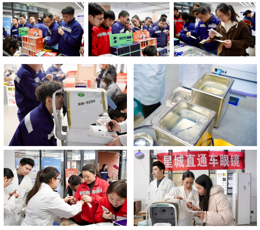 中偉開陽產業基地則以“元旦啟新歲,煥新赴征程”為主題,打造了一場貼心實用的迎新活動。四大特色服務站點同步開放,為全體員工送上貼心關懷與新年祝福。手機煥新體驗站便吸引大批員工駐足,工作人員現場提供精細化手機貼膜服務,除塵、對位、覆膜一氣呵成,在場員工還能隨心挑選折疊支架、防摔繩等實用配件,為日常使用增添滿滿便利。眼鏡養護精修站,更顯周到貼心,工作人員操作清潔設備,為員工的眼鏡進行深度清潔保養,高效清除鏡片上的污漬。站點同步提供眼鏡調校矯正、視力度數檢測服務,工作人員根據檢測結果,分享科學用眼、視力保護的實用知識,全方位守護員工的用眼健康。