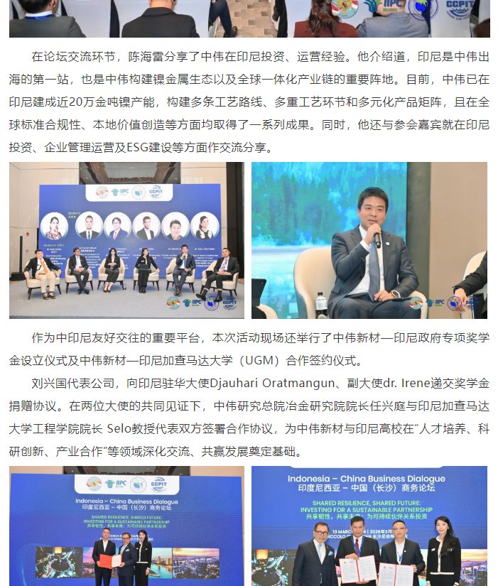 中偉新材亮相印尼—中國商務論壇,與印尼政府、高校共話合作新篇