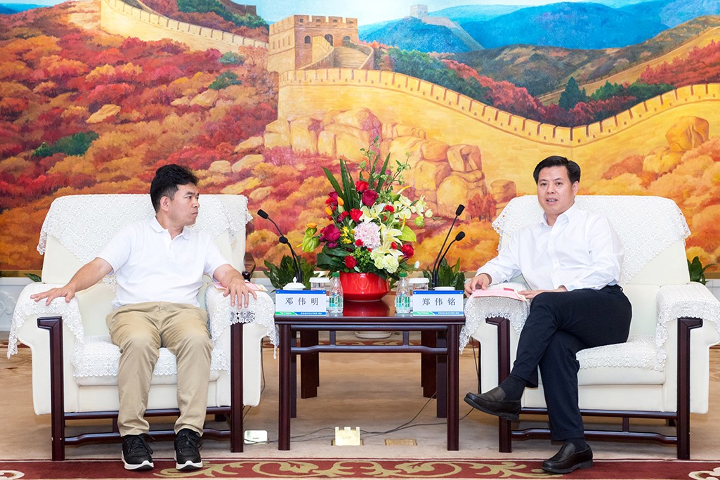 鄧偉明(左)與鄭偉銘進行深入交流