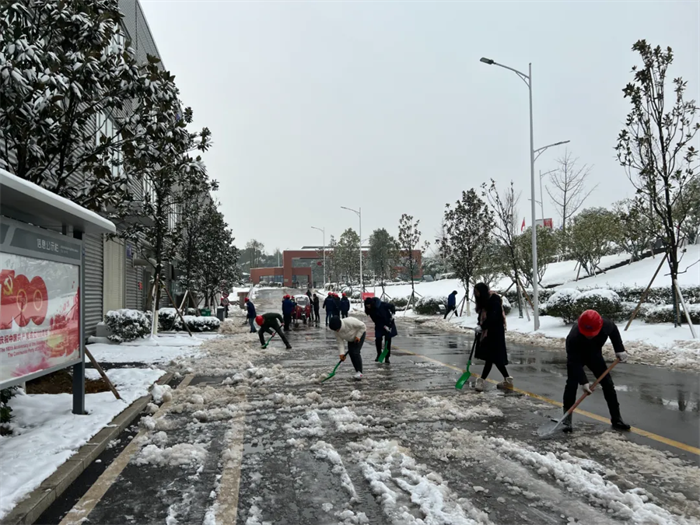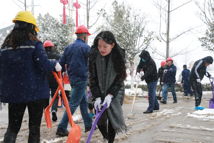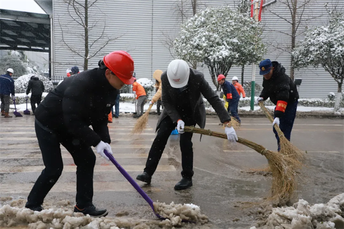 西部產(chǎn)業(yè)基地領(lǐng)導(dǎo)班子率先垂范,基地總經(jīng)理鄧光明,常務(wù)副總經(jīng)理張朝華以及公司各分管領(lǐng)導(dǎo)紛紛加入掃雪隊伍,充分發(fā)揮引領(lǐng)作用。志愿者們熱火朝天地參與到行動中,一時間,掃雪隊伍成了銀裝素裹下產(chǎn)業(yè)基地的一道美麗風(fēng)景線。
